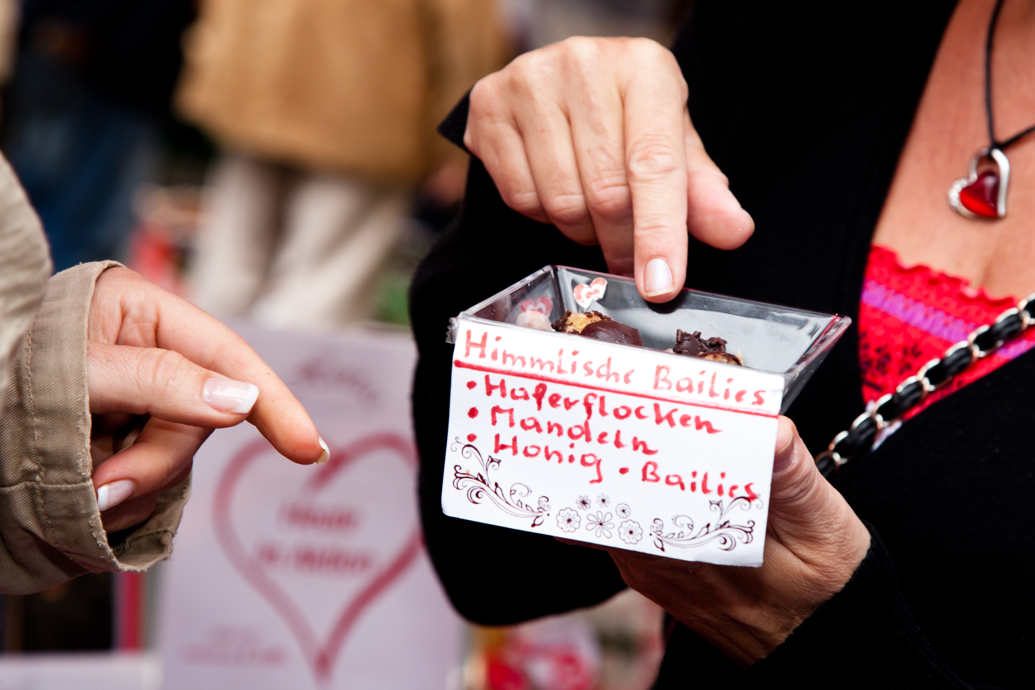 Conny kostet die gesunden Pralinen von Herta Kain auf der Schranne - Blog ConnyPURE