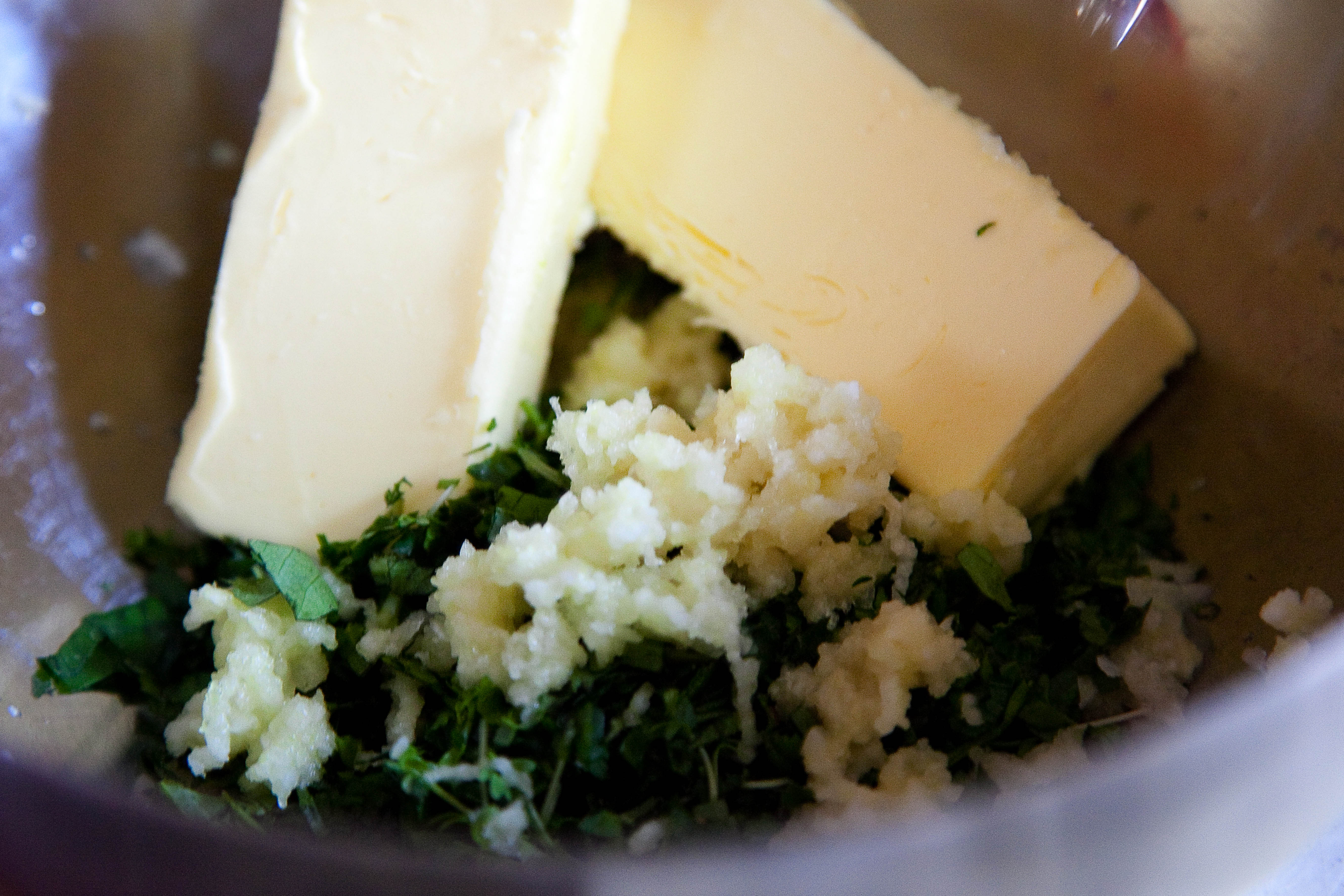 Selbst gesammelte Wildkräuter werden für die Kräuterbutter verwendet.
