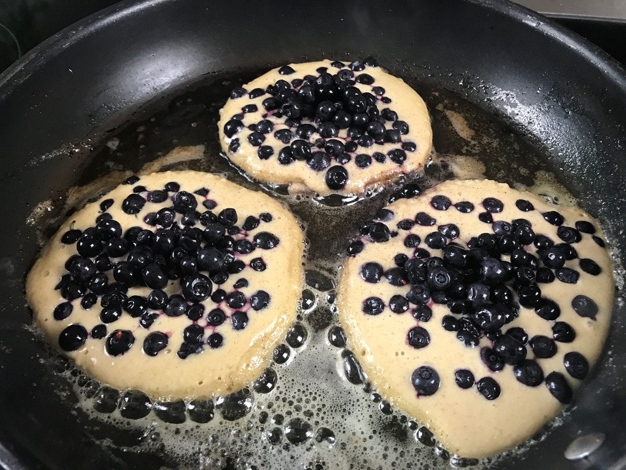 Heidelbeeren auf Pancake verteilen