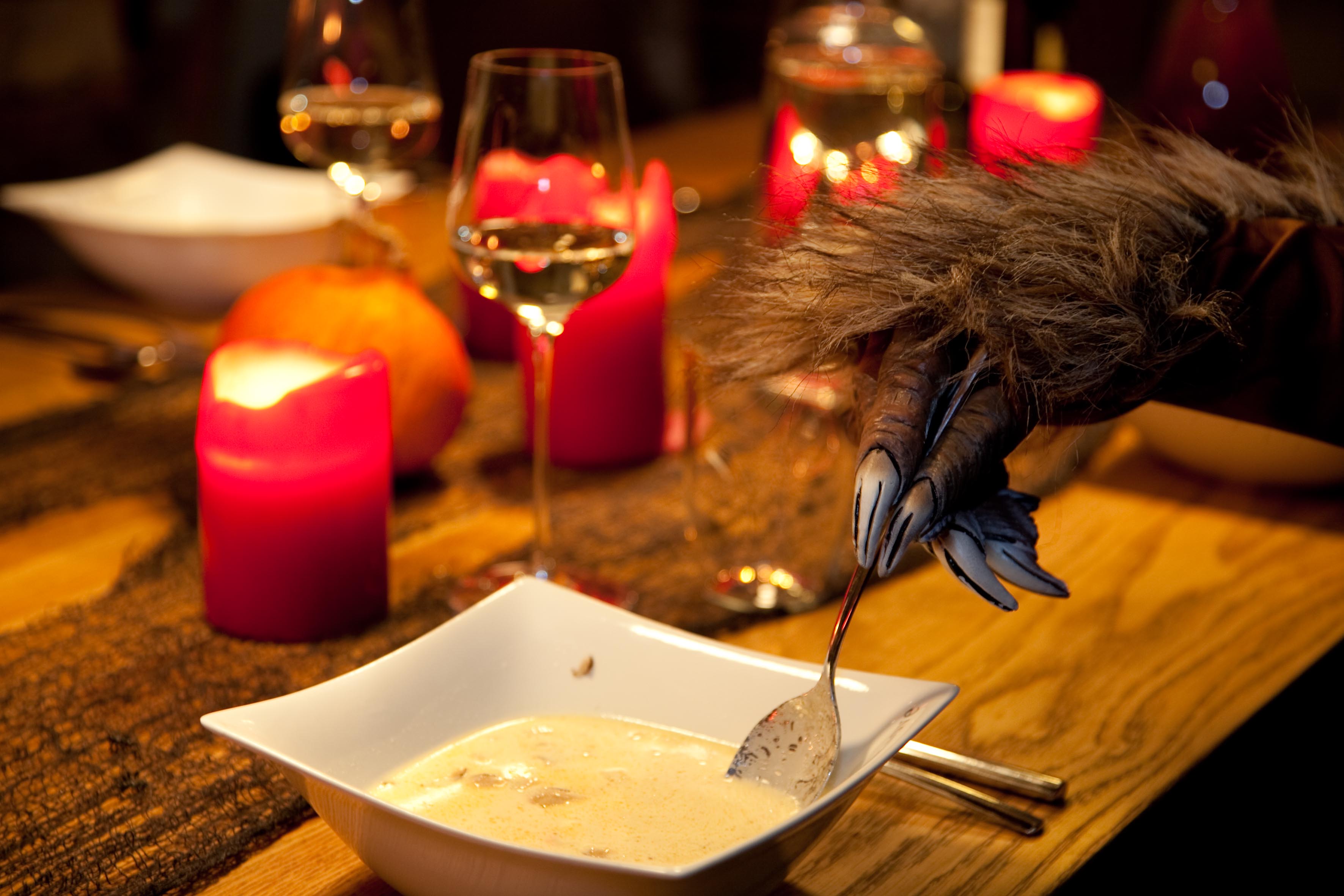 Die Gäste lassen sich die Halloween-Suppe schmecken.
