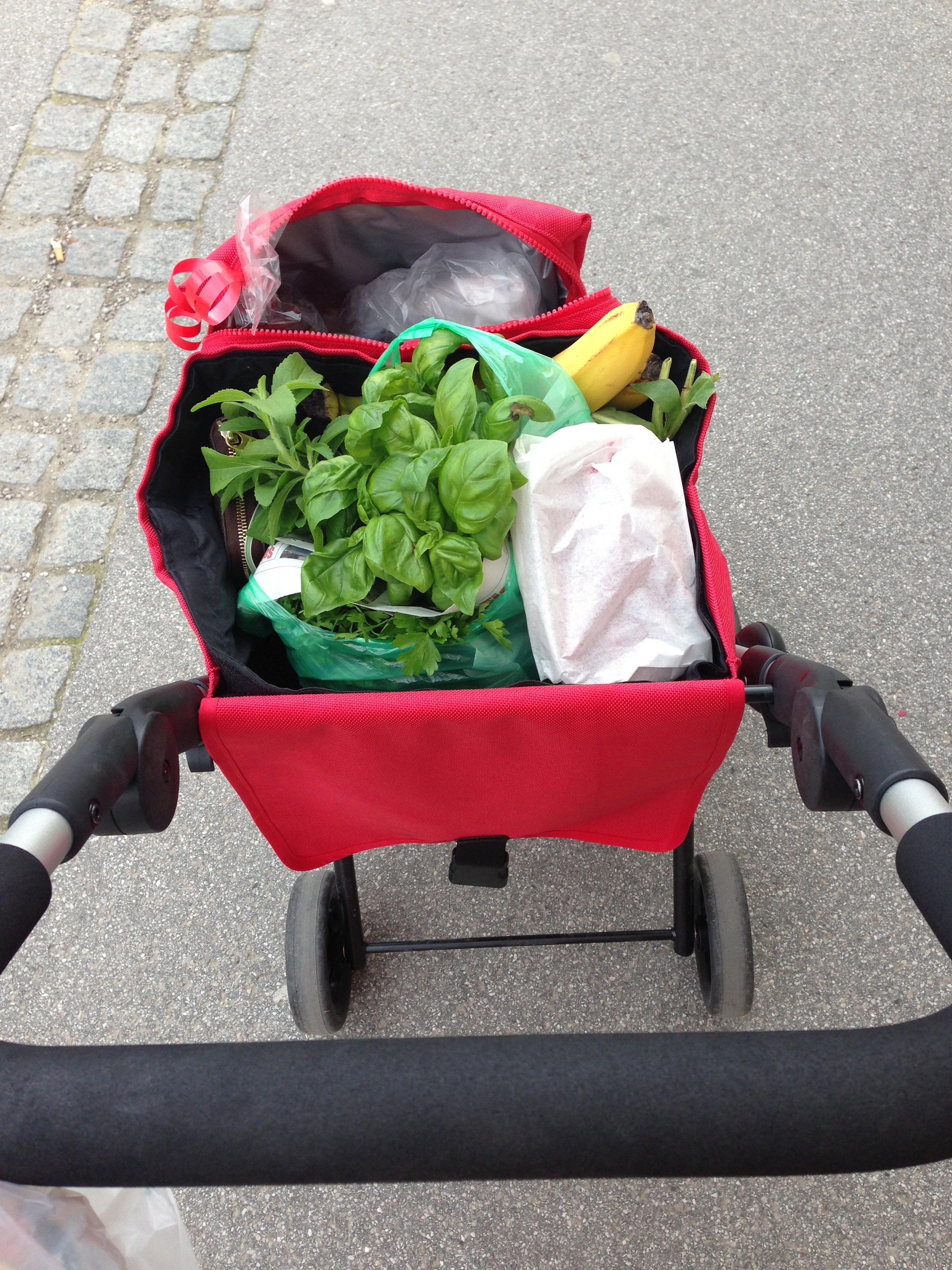Neben den Einkaufen findet sich in meinem Shopper Platz für Geldtasche, Handy und einen kleinen Regenschirm. Und ganz wichtig: man hat immer noch eine Hand frei um eine Marille zu kosten oder um Bekannte zu begrüßen. Sehr praktisch ist ein Wagen mit mehr Fächer, die z.T. thermoisoliert sind.